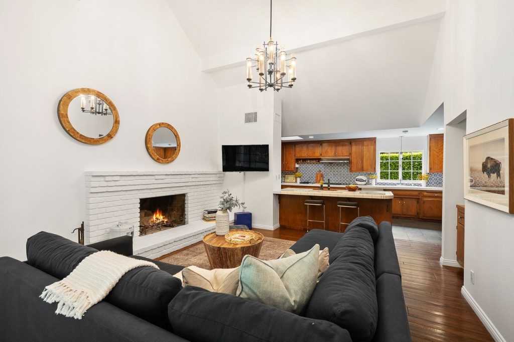 This residence underwent a complete top-to-bottom design renovation, transforming a never-updated 1980s top-floor 2-bedroom, 2-bath plus den into a refined, modern home. With treetop pool views, high ceilings, a fireplace, and walls of windows and sliding glass doors, the original architecture provided exceptional bones for a thoughtful reimagining.